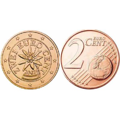 سکه 2 سنت یورو - مس روکش فولاد - اتریش 2007 غیر بانکی