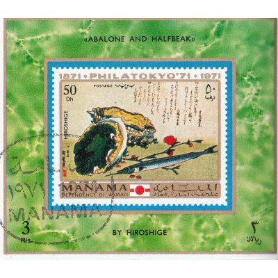 مینی شیت ماهیها- با مهر CTO - پست هوائی - منامه 1971