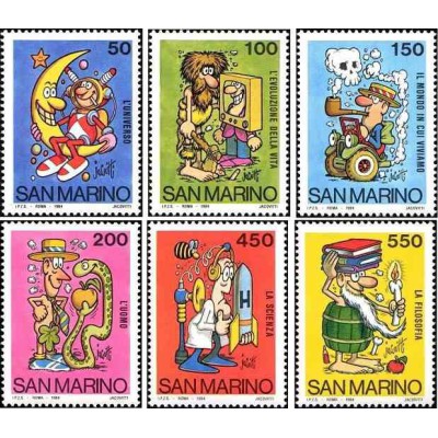 • 6 عدد تمبر مدرسه و طرحهای کارتونی فیلاتلی - اثر بنیتو جاکوویتی - سان مارینو 1984