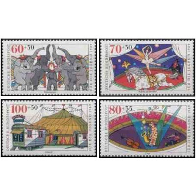 4 عدد تمبر خوابگاه جوانان - سیرک - جمهوری فدرال آلمان 1989 قیمت 13 دلار