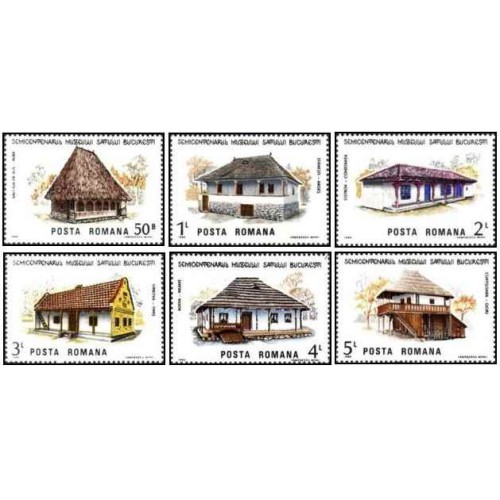 6 عدد تمبر پنجاهمین سالگرد موزه دهکده، بخارست - رومانی 1986