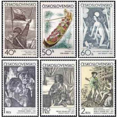 6 عدد  تمبر هنر گرافیک چک اسلواکی - تابلو نقاشی - چک اسلواکی 1971