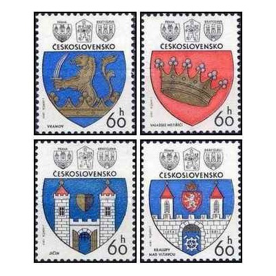 4 عدد تمبر نشان های شهرهای چک اسلواکی - چک اسلواکی 1977