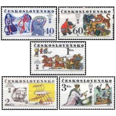5 عدد تمبر ششمین نمایشگاه دوسالانه تصویرگران کتاب کودک، براتیسلاوا - چک اسلواکی 1977