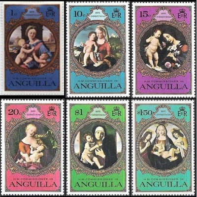 6 عدد  تمبر تابلو نقاشی - مدونا - B - آنگوئیلا 1975