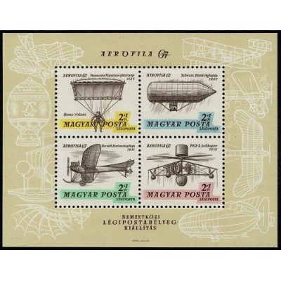 مینی شیت  نمایشگاه بین المللی تمبرهای پست هوایی آئروفیلا  - مجارستان 1967
