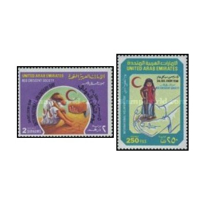 • 2 عدد تمبر روز جهانی داوطلب - هلال احمر - امارات متحده عربی 1989