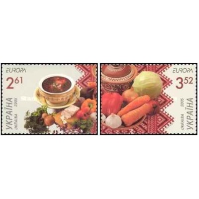 2 عدد  تمبر مشترک اروپا - Europa Cept - سلیقه غذا  - اوکراین 2005 قیمت 4 دلار