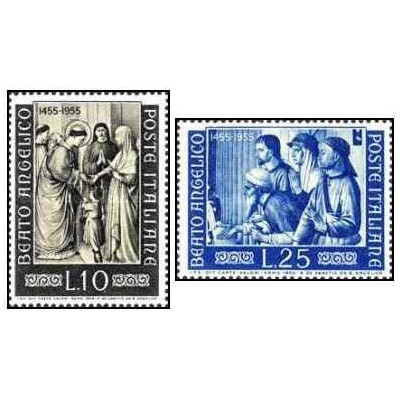 2 عدد  تمبر پانصدمین سالگرد مرگ بیتو آنجلیکو  - ایتالیا 1955
