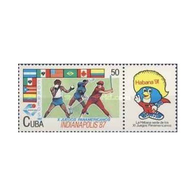 1 عدد تمبر دهمین دوره بازی های پان آمریکایی، ایندیاناپولیس - با تب - کوبا 1987
