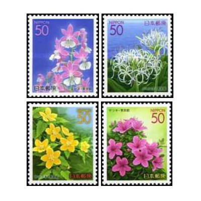 4 عدد تمبر استانی - توکیو - گلها - ژاپن 2005
