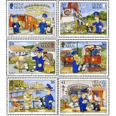6 عدد تمبر شخصیت کمیک "پت پستچی" از جزیره من بازدید می کند - جزیره من 1994 قیمت 6 دلار