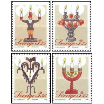 4 عدد تمبر کریسمس - شمعدانها- سوئد 1995