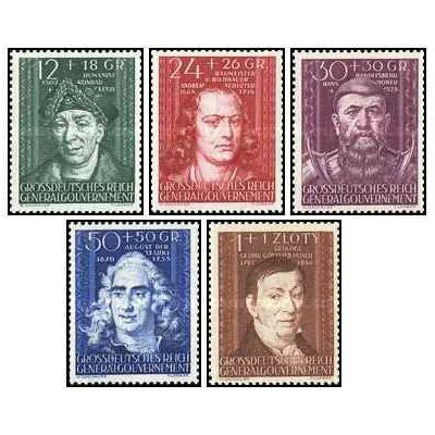 5 عدد تمبر چهره های فرهنگی - لهستان تحت اشغال آلمان - لهستان 1944