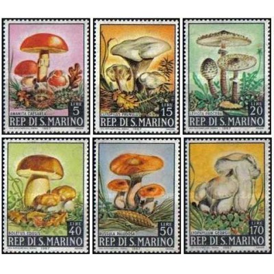 6 عدد تمبر قارچها - سان مارینو 1967 چسب یکی از تمبر ها کمی مایل به زرد