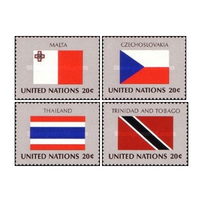 4 عدد  تمبر پرچم های کشورهای عضو سازمان ملل - مالت چک اسلواکی تایلند ترینیدادتوباگو- نیویورک سازمان ملل 1981
