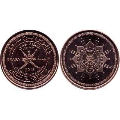 5 Bise coin - commemorating the 45th year of Sultan Qaboos' reign - bronze plated steel - Oman 2015 UNC
