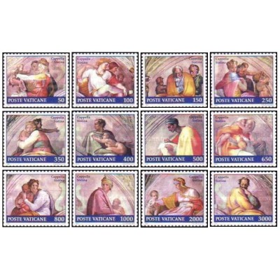 12 عدد  تمبر بازسازی کلیسای سیستین - واتیکان 1991 قیمت 12.1 دلا