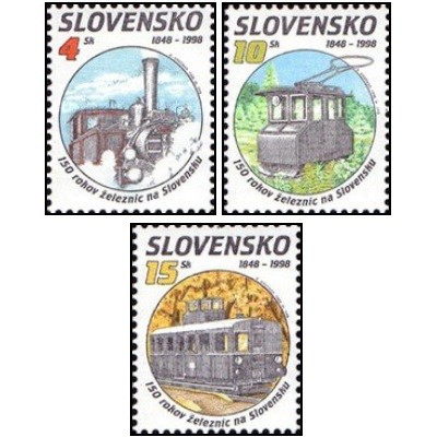 3 عدد  تمبر صد و پنجاهمین سالگرد راه آهن در اسلواکی  - اسلواکی 1998