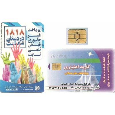 Telephone card - Small Azadi Square - Tehran Telephone Company - Back 1818 - Colored hands - Incard chip - IN4