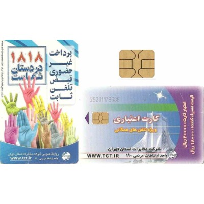 Telephone card - Small Azadi Square - Tehran Telephone Company - Back 1818 - Colored hands - Incard chip - IN7