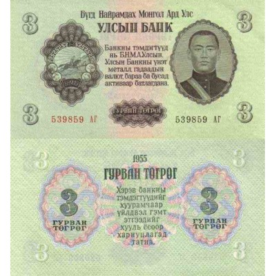 MONGOLIA 1955 - Ulsiyn Bank - 3 Tِgrِg