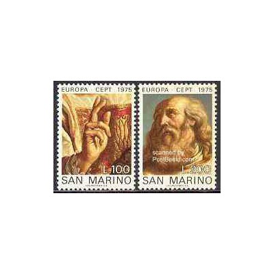 2 عدد تمبر تابلو نقاشی - تمبر مشترک اروپا - Europa Cept - سان مارینو 1975