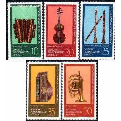 5 عدد تمبر آلات موسیقی - جمهوری دموکراتیک آلمان 1977