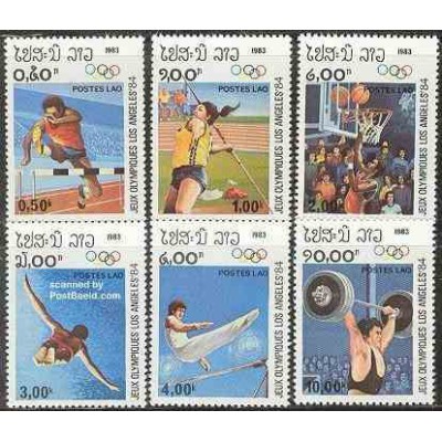 6 عدد تمبر بازیهای المپیک لس آنجلس 84 - لائوس 1983