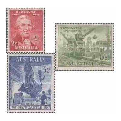 • 3 عدد تمبر صد و پنجاهمین سالگرد شهر نیوکاسل - استرالیا 1947