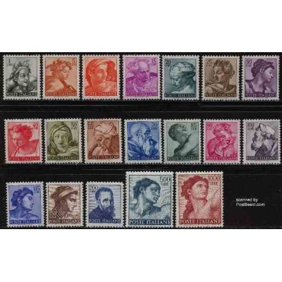 19 عدد تمبر سری پستی - پرتره های کلیسای سیستین - اثر میکلانژ - ایتالیا 1961