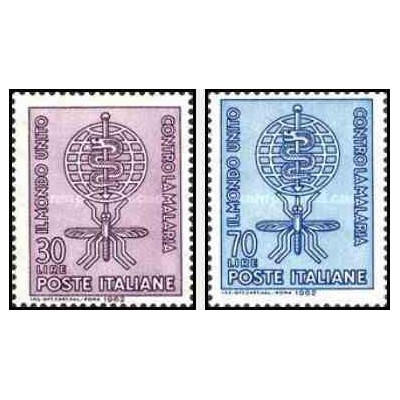 2 عدد تمبر ریشه کنی مالاریا- سازمان بهداشت جهانی - ایتالیا 1962