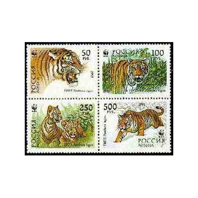 4 عدد تمبر ببر - بهم چسبیده - روسیه 1993  WWF